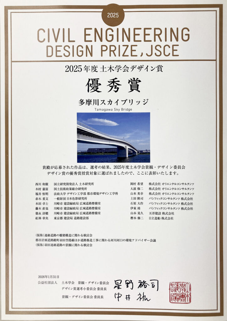 「多摩川スカイブリッジ」が2025年度 土木学会デザイン賞 優秀賞を受賞しました